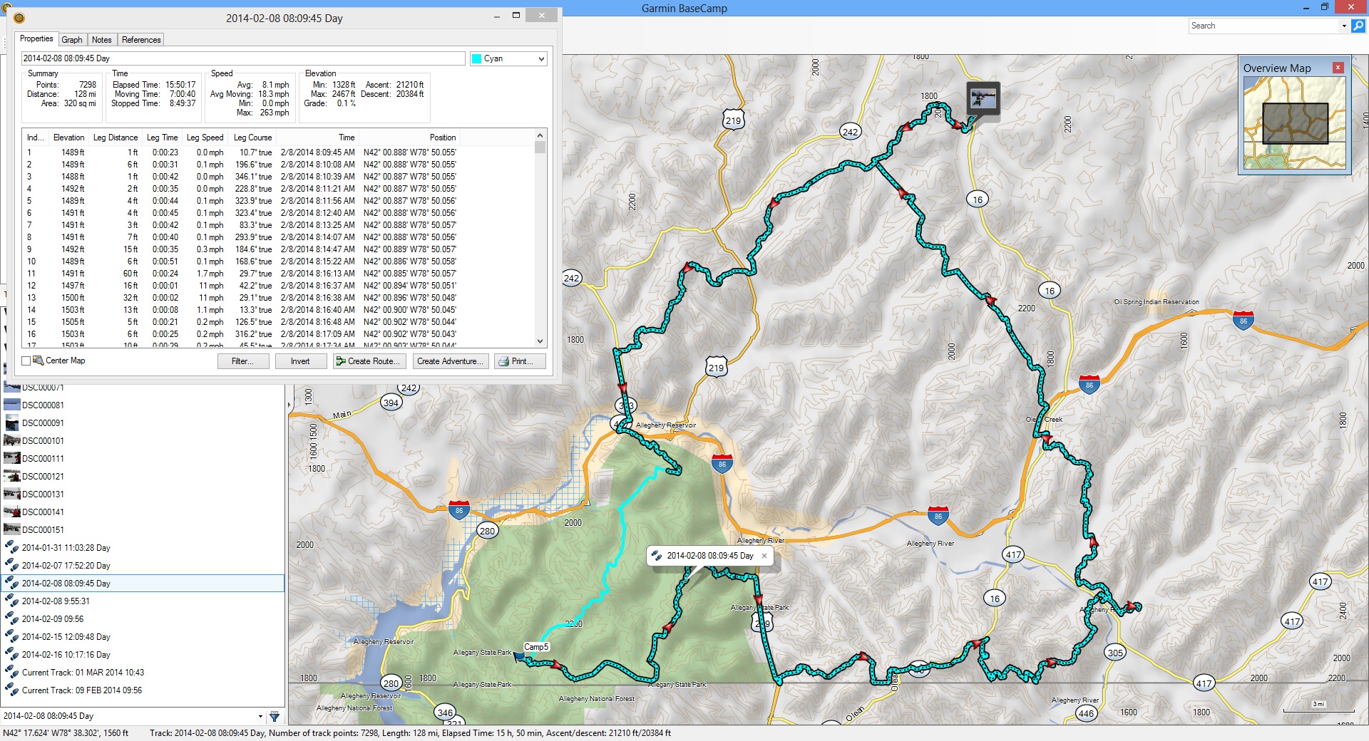 GPS tracklog from ride in NY at Alleghany State Park - Feb 2014